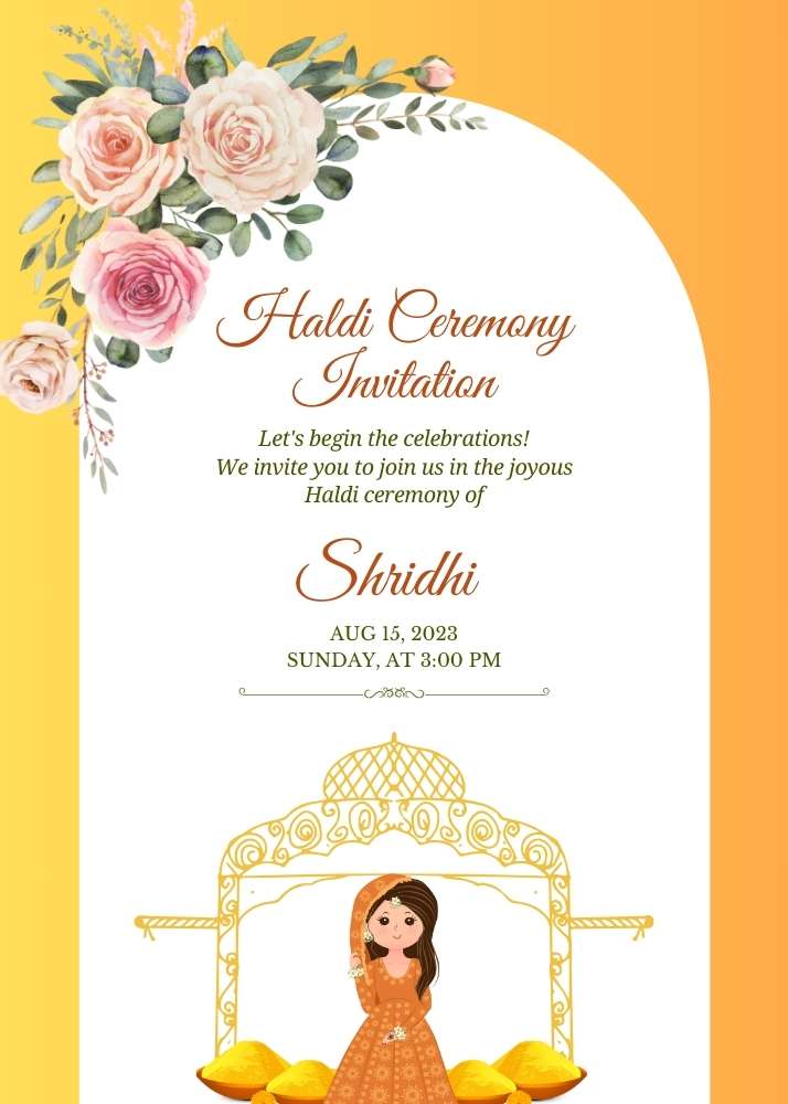 Invite with tradition, celebrate with happiness, and create unforgettable memories with our stunning Haldi Ceremony Invitation E-Card!
